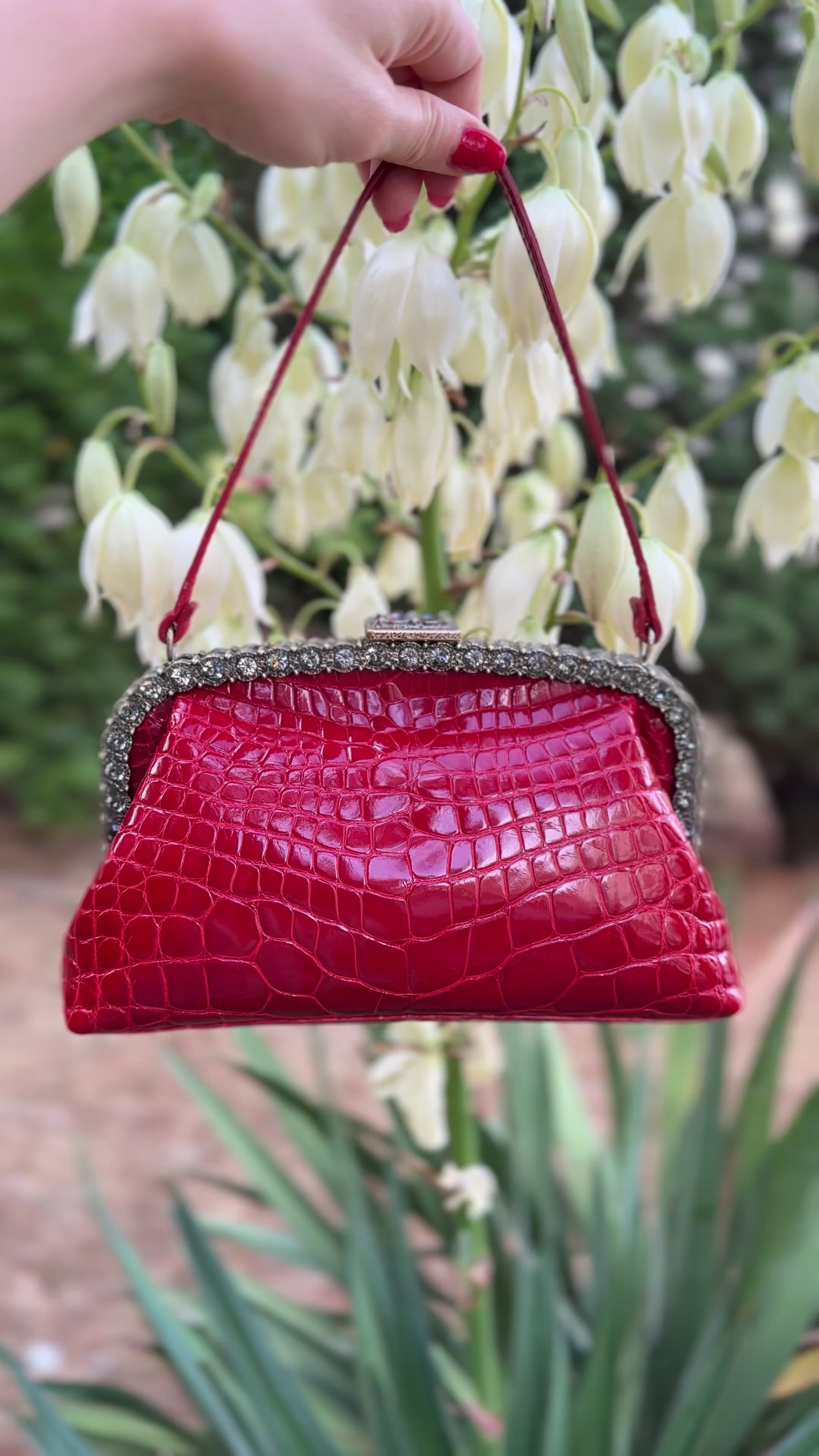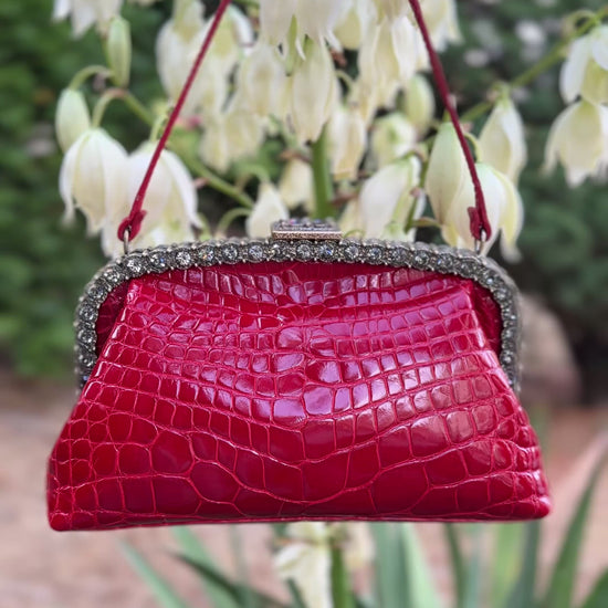 Rare Valentino Fall/Winter 2005 Runway purse in cherry red crocodile skin with a clasp inlaid with multiple crystals💎🍒♥️