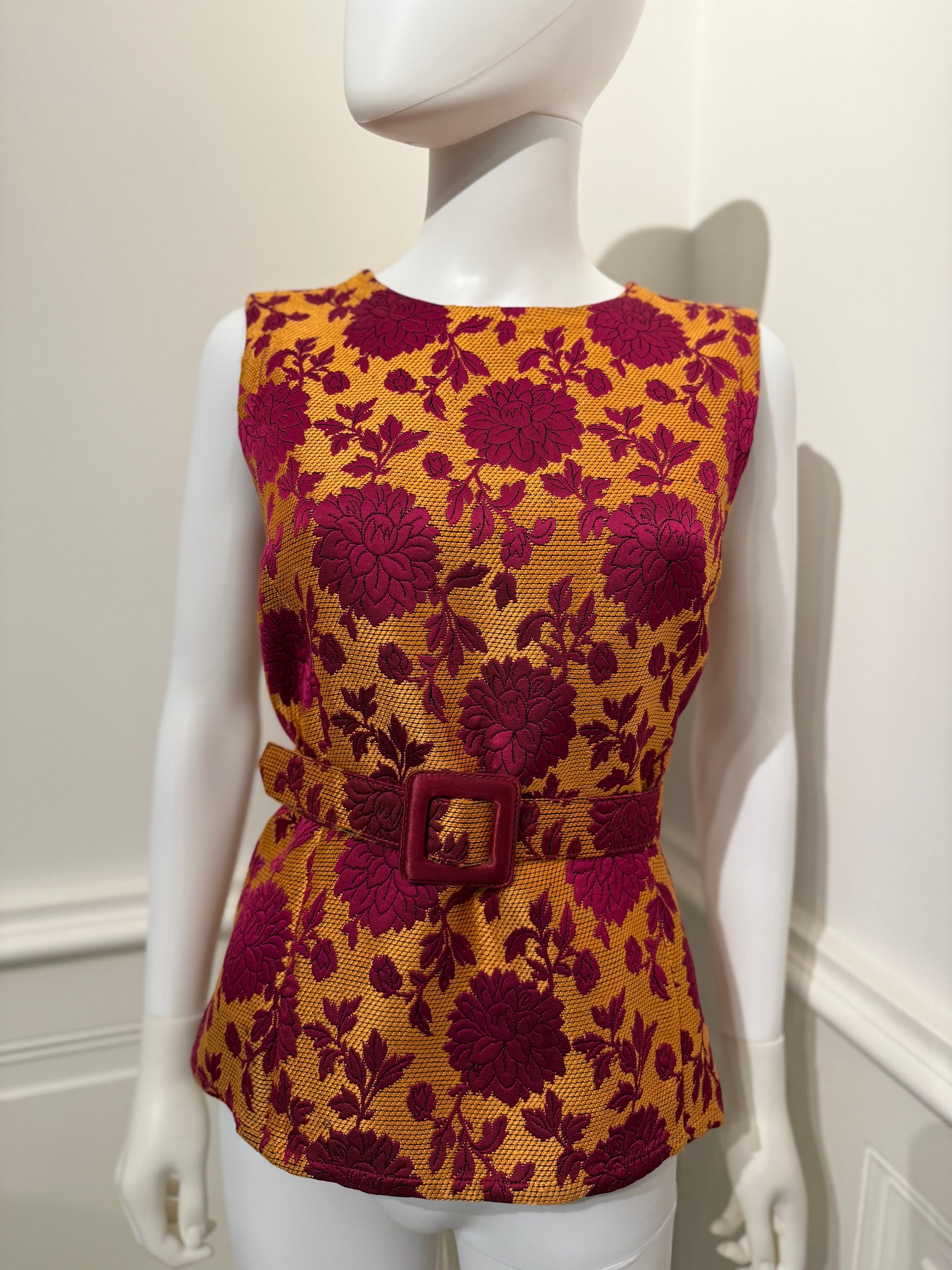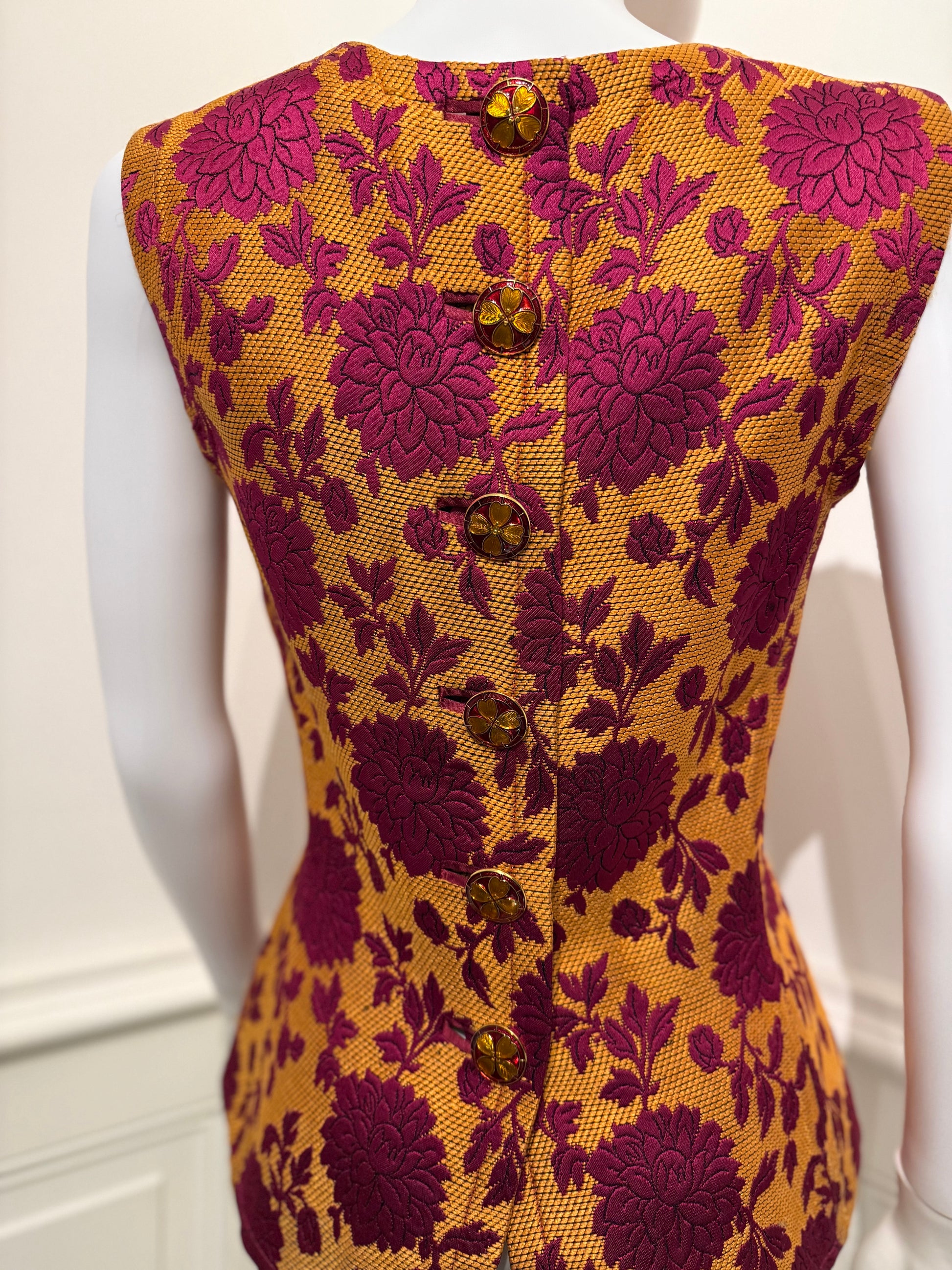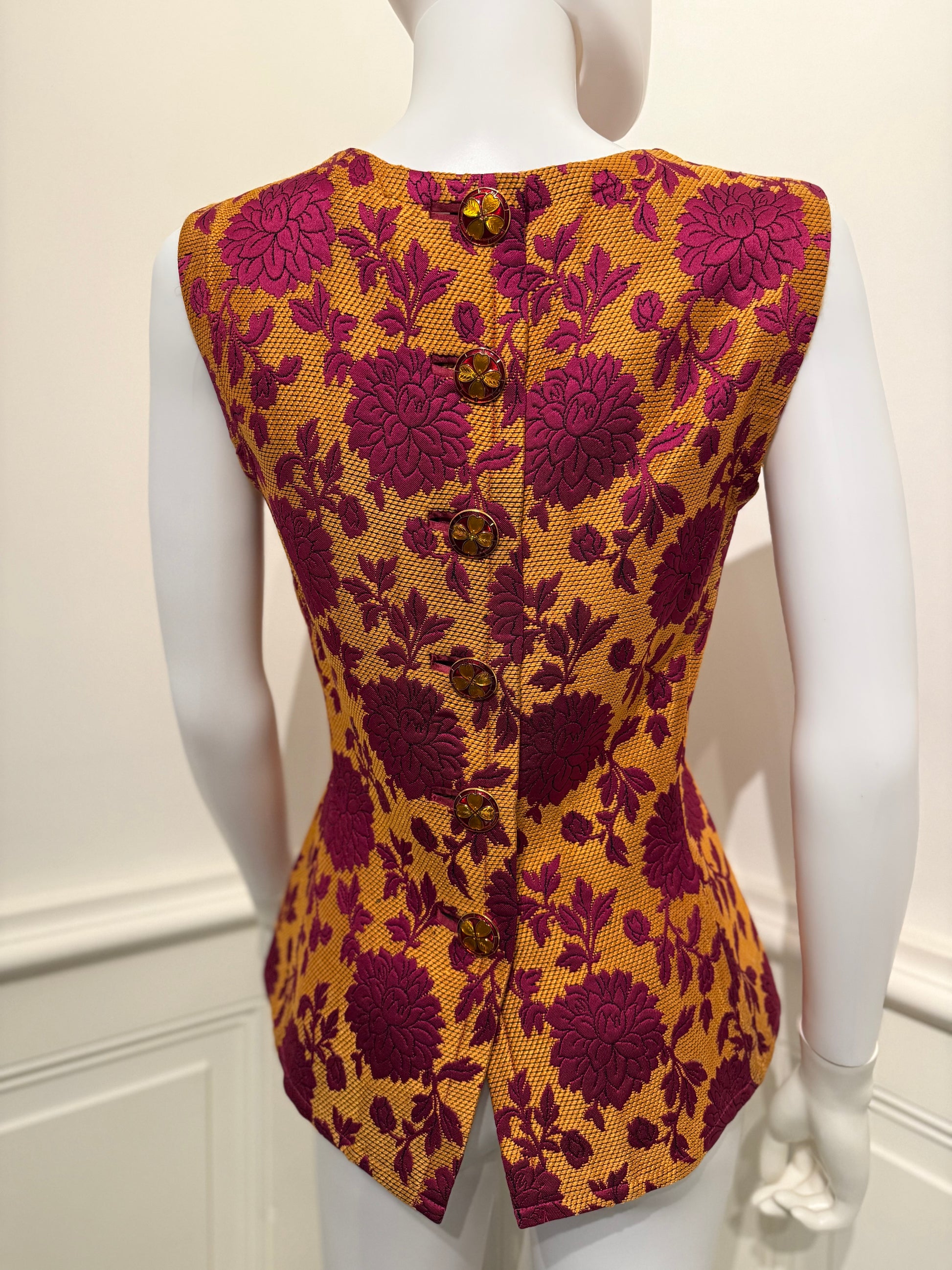 Rare Yves Saint Laurent Rive Gauche Autumn/Winter 1992/1993 Runway brocade top/vest with the belt and beautiful enameled buttons.