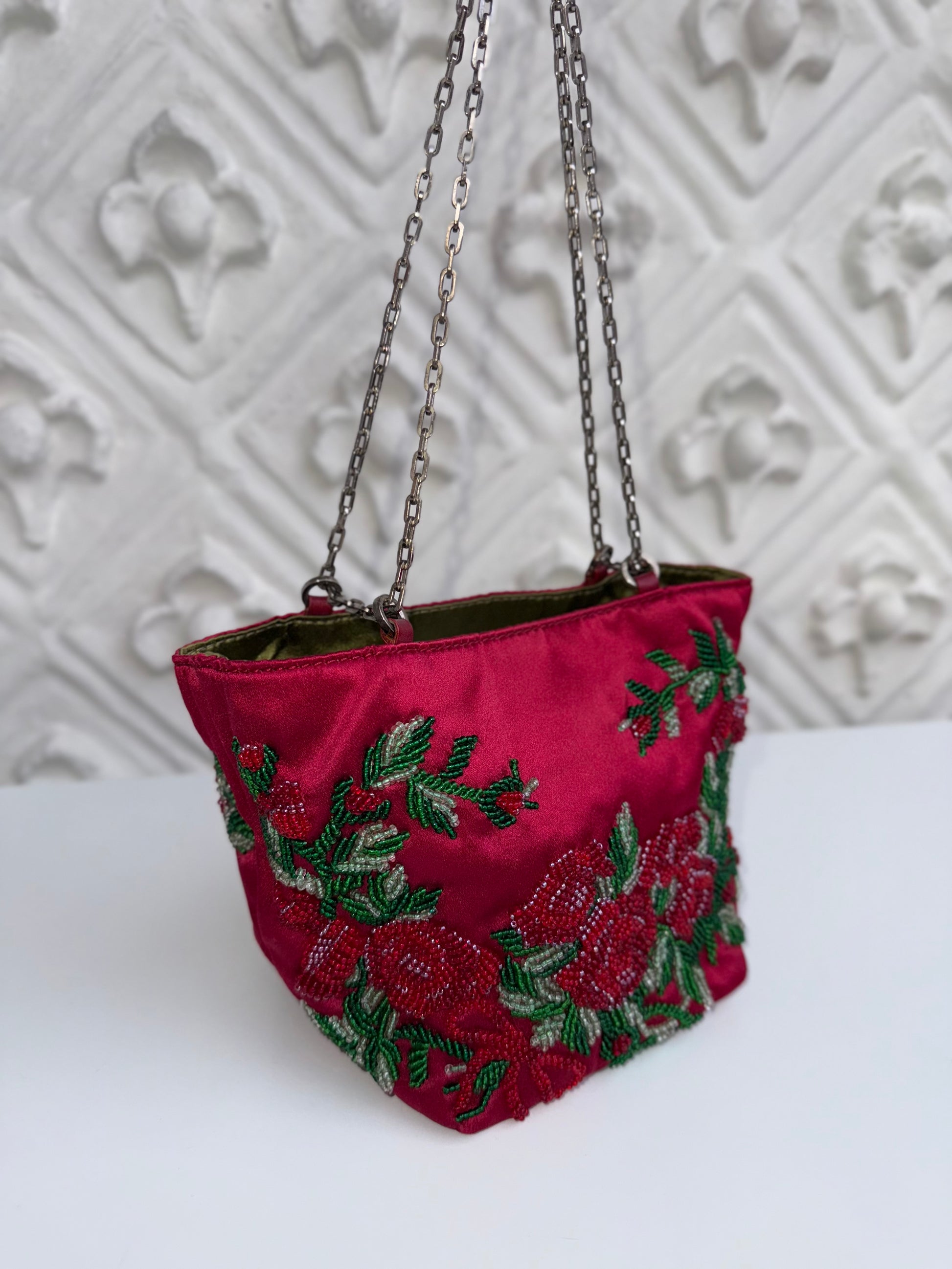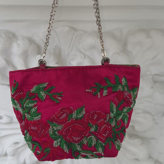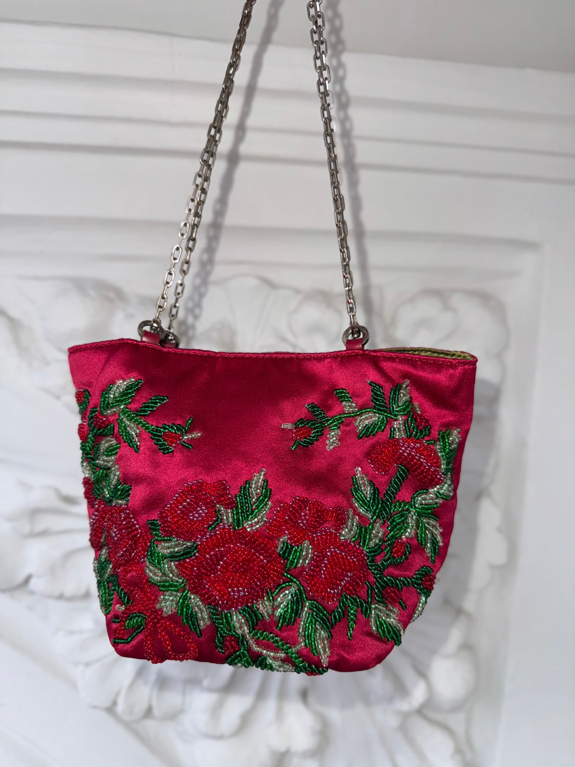 Vintage early 2000’s Valentino Garavani hand-beaded silk mini bag with chain-handle