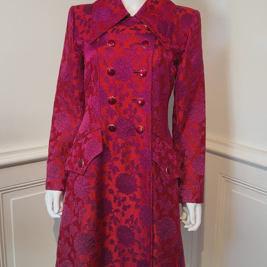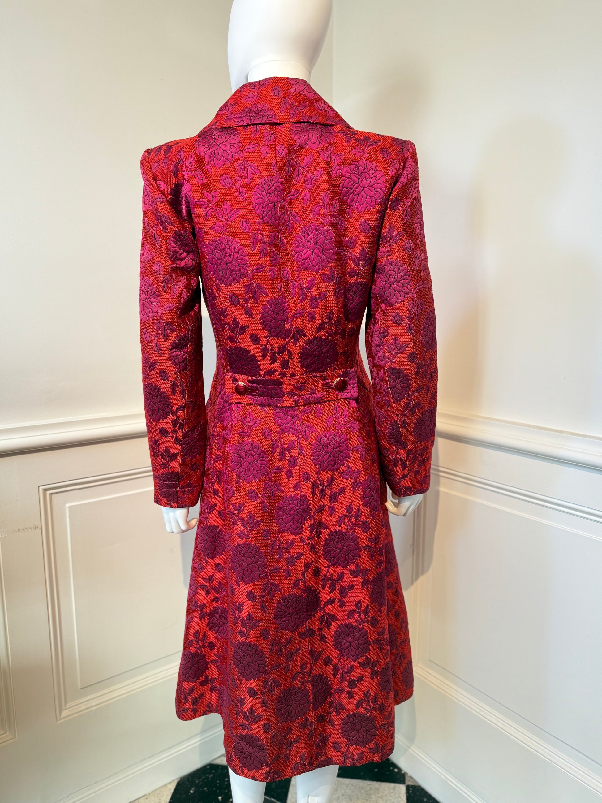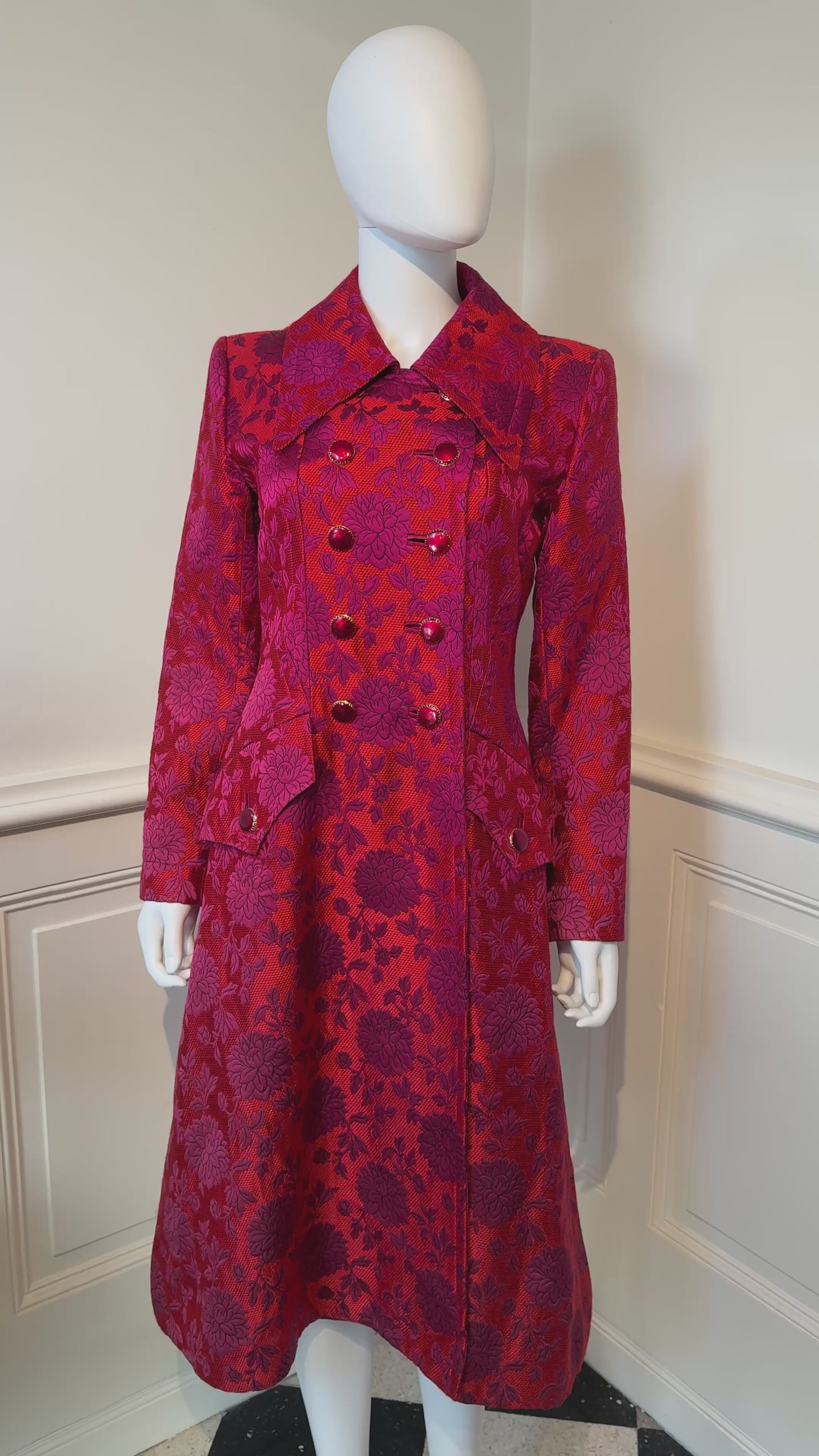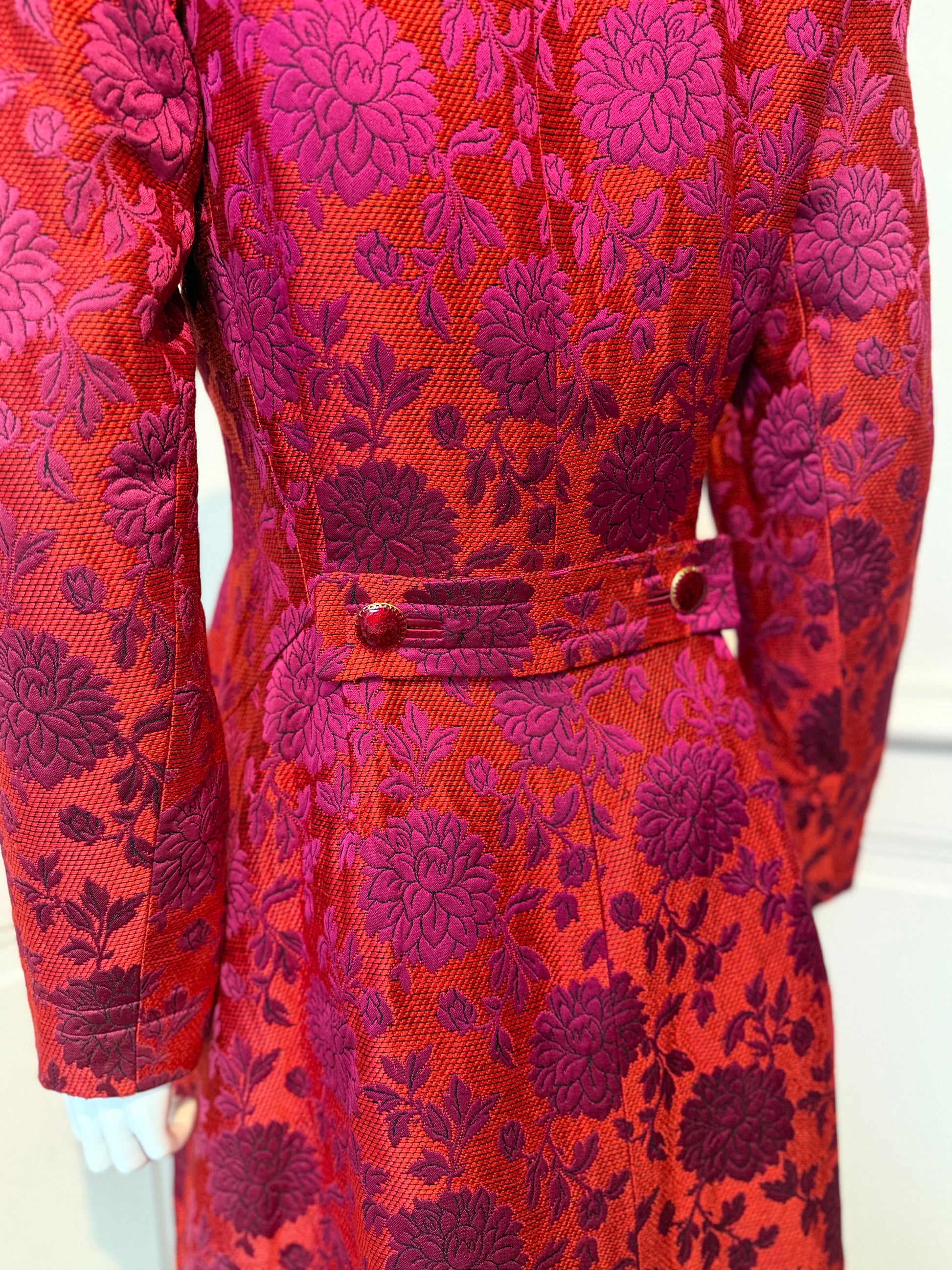 Documented Runway Yves Saint Laurent Rive Gauche AW 1992/1993 Runway brocade coat with enameled buttons.
