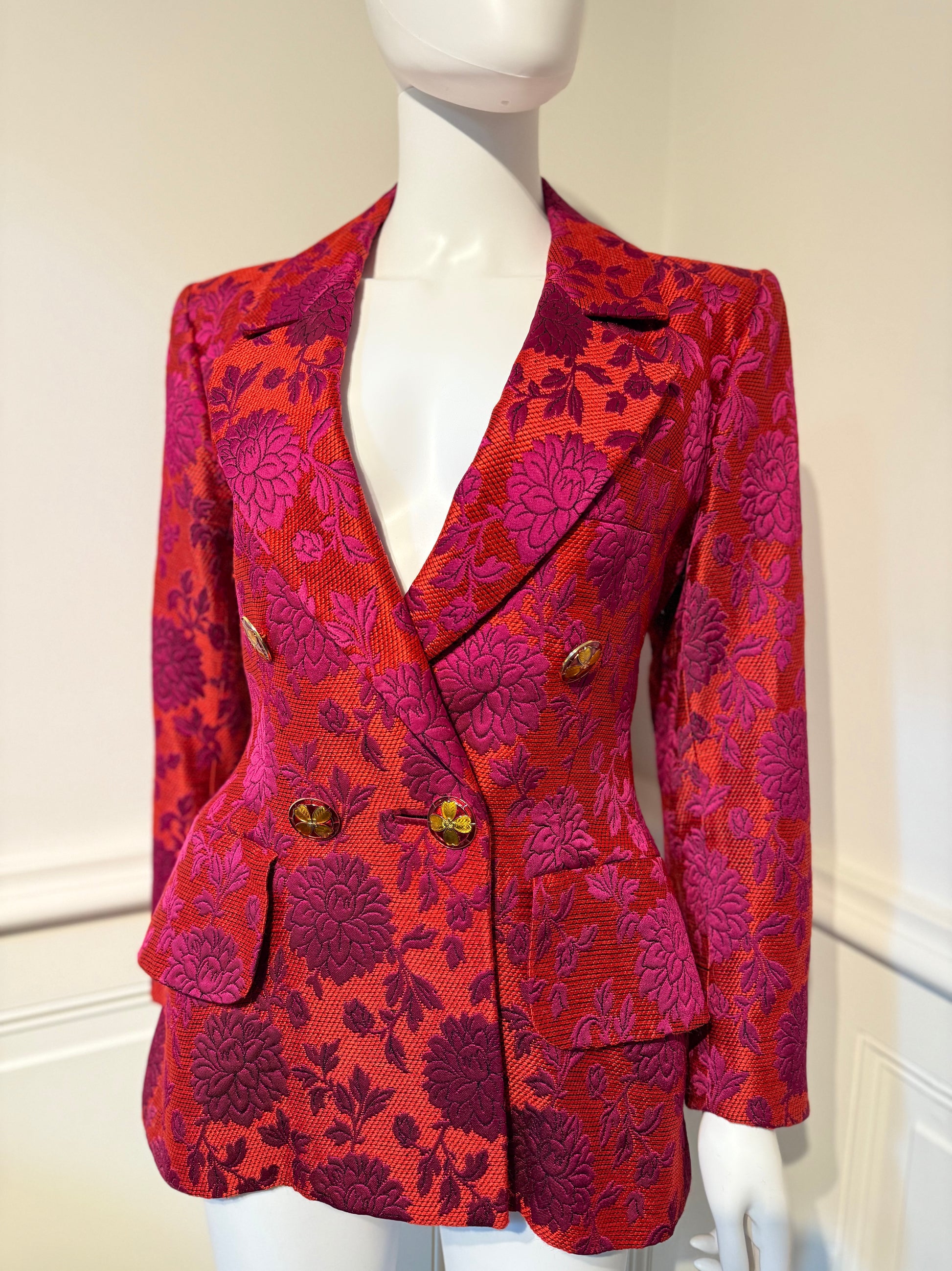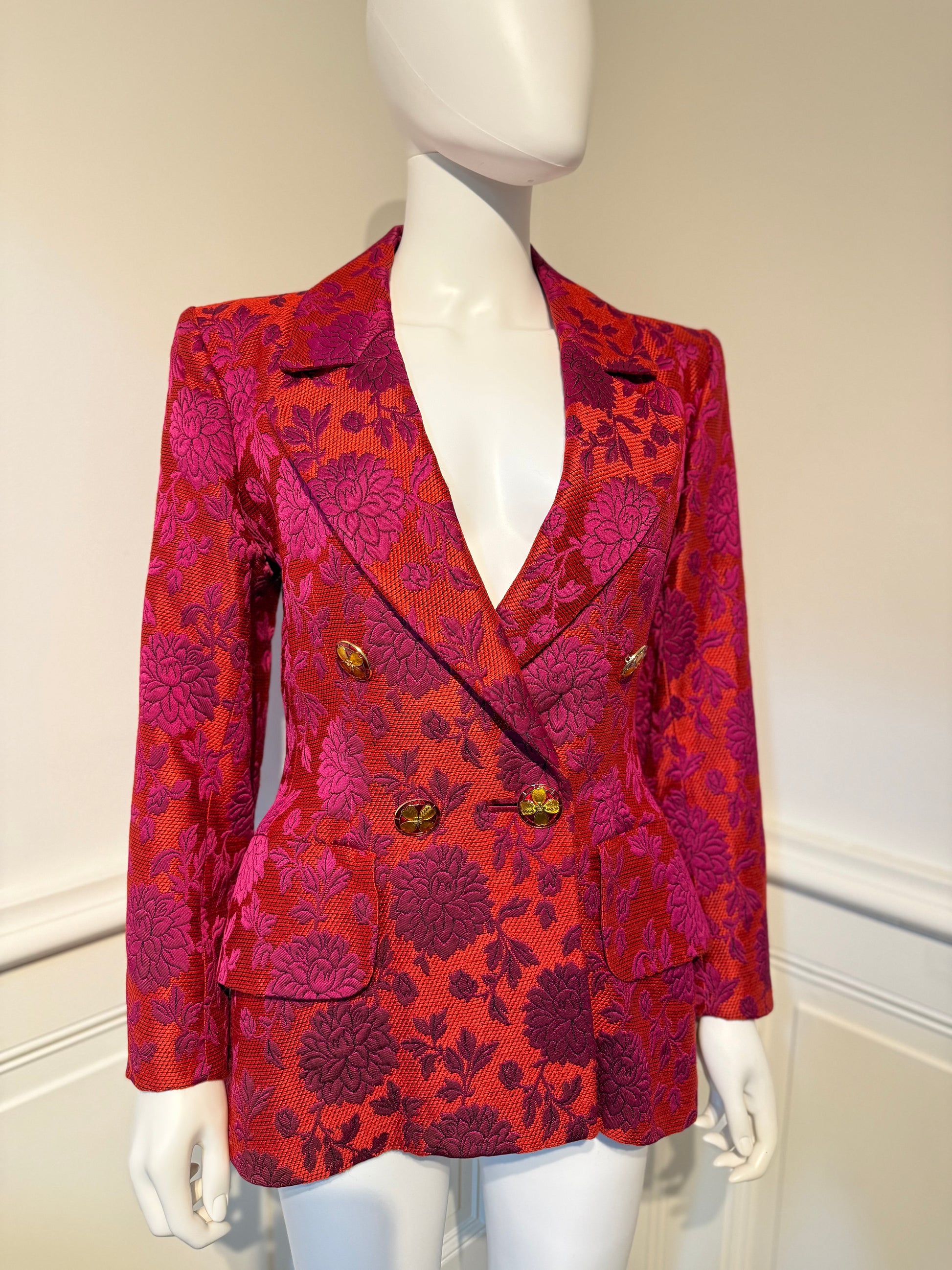 Rare collectible Yves Saint Laurent Rive Gauche Fall/Winter 1992/1993 Runway brocade jacket with enameled buttons which are like jewelry.